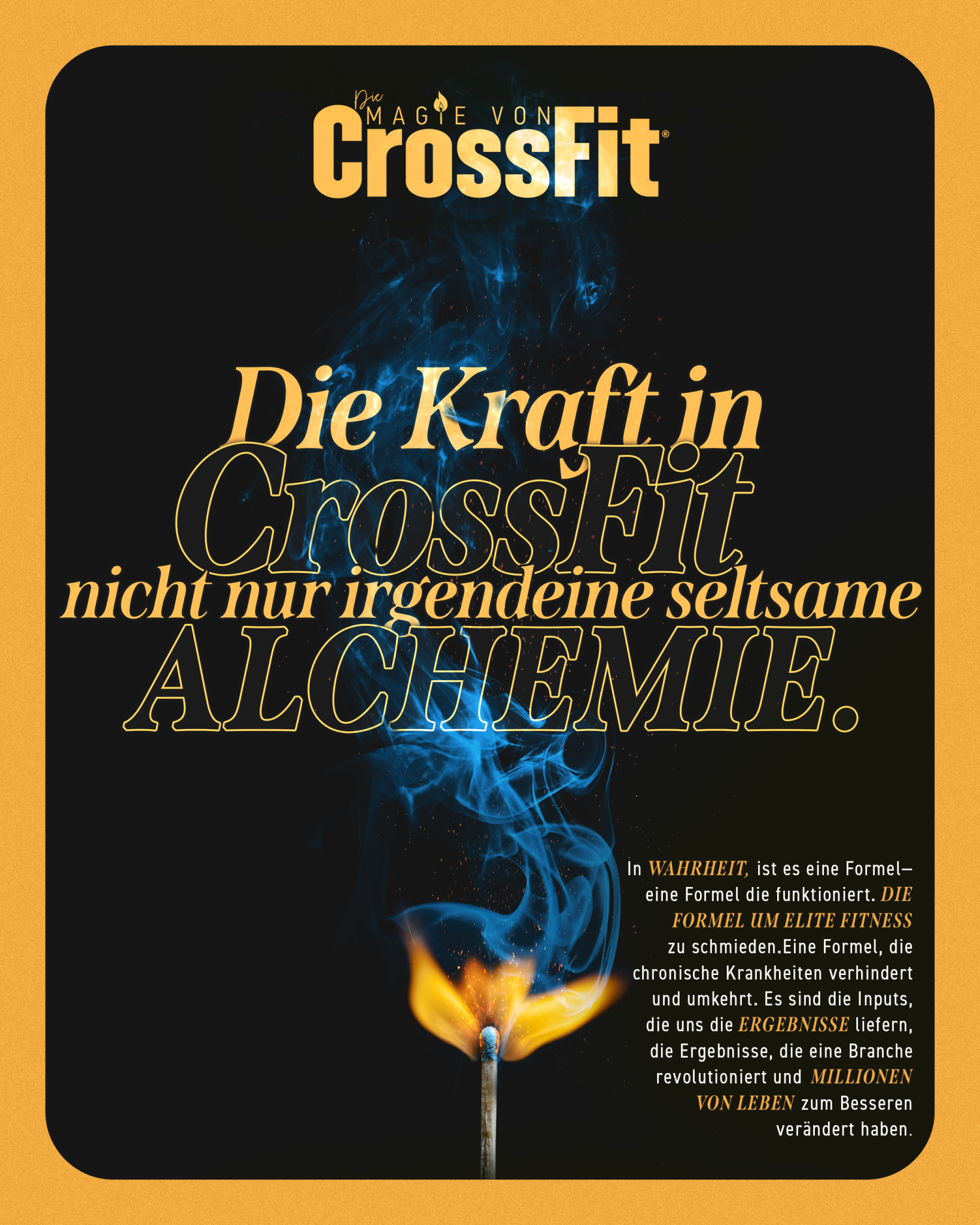 Gemeinsam als CrossFitter, verändern wir die Welt indem wir die Gesundheit und Fitness unserer Familien, Nachbarn und Gemeinden steigern. Wir bekämpfen die chronischen Krankheiten lokal.